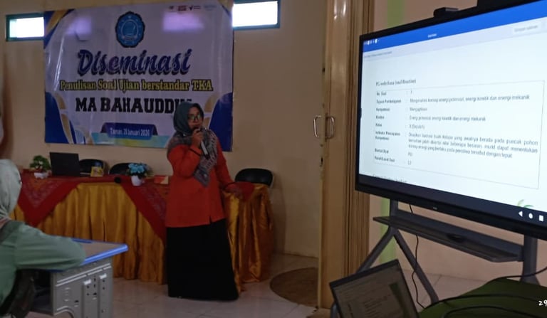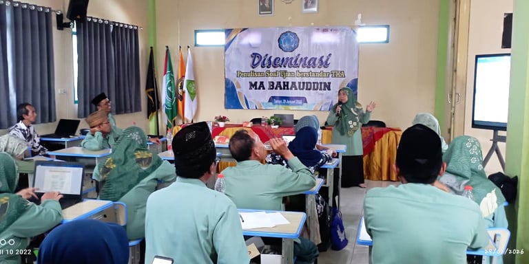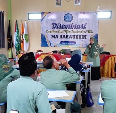 Diseminasi ini dilakukan sebagai tindak lanjut dari pelaksanaan bimbingan teknis penyusunan kisi-kisi dan soal ujian madrasah yang di ikuti para Guru dari berbagai Madrasah Aliyah yang ada di Kelompok Kerja Madrasah (KKM) MA Darul Ulum Waru Sidoarjo pada tanggal 26 – 27 Januari 2026 ,dan Madrasah Aliyah Bahauddin Taman mengirim 4 (empat Guru) sebagai perwakilan.
